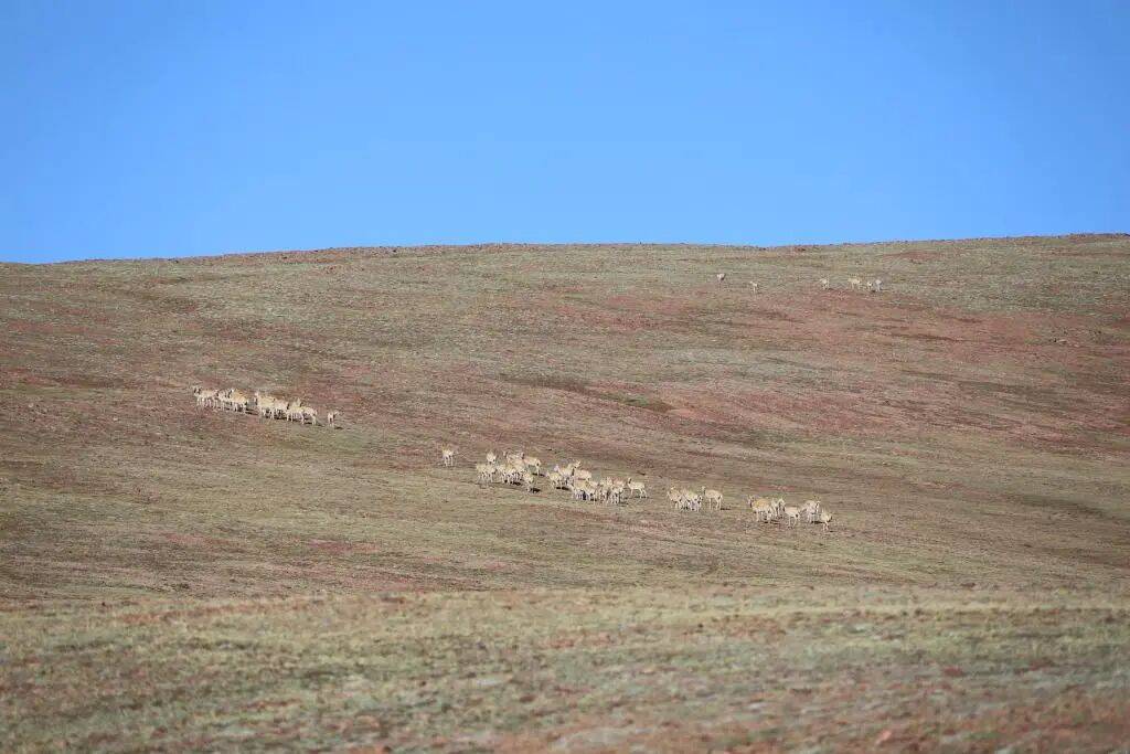 可可西里腹地卓乃湖附近的藏羚羊群。