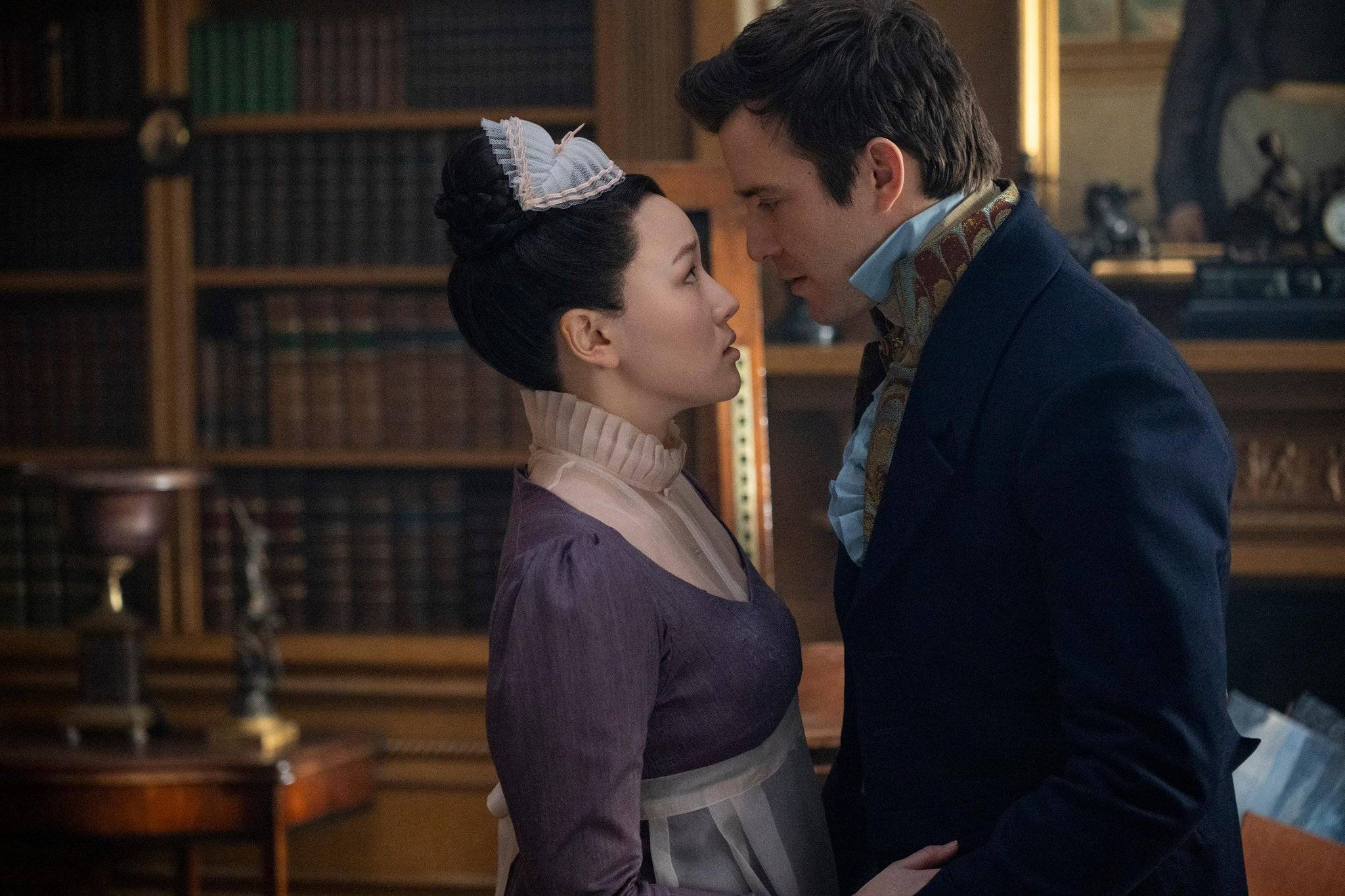 而与本尼迪克特上演跨阶级爱恋的女主角🎭️索菲·贝克特,则由韩裔澳大利亚女演员叶林·韩饰演。叶林·韩自带清冷倔强的气质,完美契合索菲的独立与清醒。她将索菲作为已故伯爵私生女的隐忍、面对阶级歧视时的不卑不亢,以及面对爱情时的纯粹与勇敢,刻画得入木三分。无论是假面舞会上灵动俏皮的模样,还是女仆装束下坚韧隐忍的状态,她都能精准切换,让观众瞬间代入角色的喜怒哀乐。