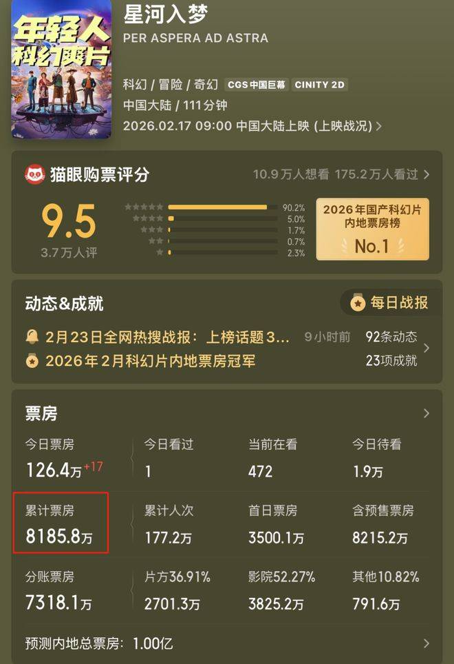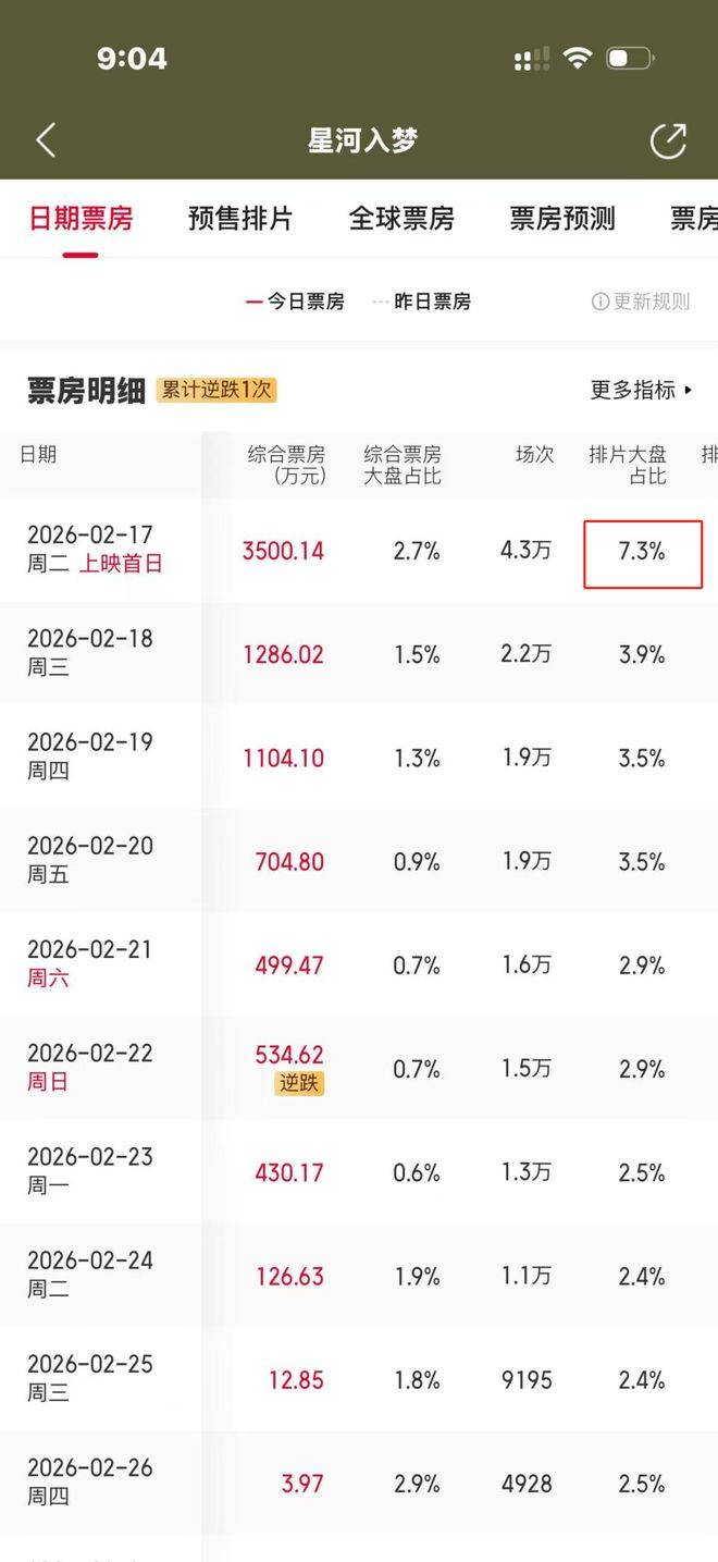 星河入梦》第一天的排片率竟然高达7.3%。而《