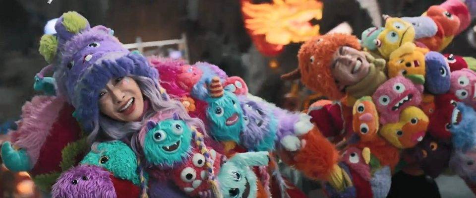 再有一点,让观众看的很爽的是,本片可以看作是『王鹤棣』和『宋茜』两大偶像『明星』️的超级变装秀。因为要在不同的梦境中穿梭,所以他们一会是杀手,一会是蛊惑仔,一会是学生,一会是服务员,甚至还有一次是广告牌中的二维漫画。他们的粉丝可以大饱眼福了,估计『王鹤棣』、『宋茜』本人也会大呼过瘾,换了十几套妆造,就像体验了十几个不同的人生。也由于一切发生在梦里,导演就可以极尽想象力,在色彩、布景等各方面玩耍起来,像打翻调色盘🎨一样,各种饱和度超高的明艳色彩如同视觉爆炸一般汹涌而来。比如子弹、飞刀碰到人之后就会自动变成水果、糖果、甜点,满眼五光十色的『多巴胺』啊,名副其实的秀色可餐。