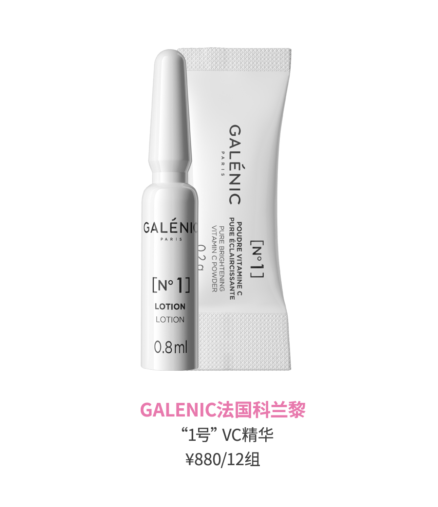 每组包含原型活VC粉末0.2g和玻尿酸肌底液 0.8ml,20%黄金浓度的VC,具有高活性和强抗氧力,能刺激胶原蛋白新生,抚平细纹,让肌肤透亮发光。每次使用将VC粉末和肌底液在手掌混合,等质地呈透明状态后涂抹在脸部即可。