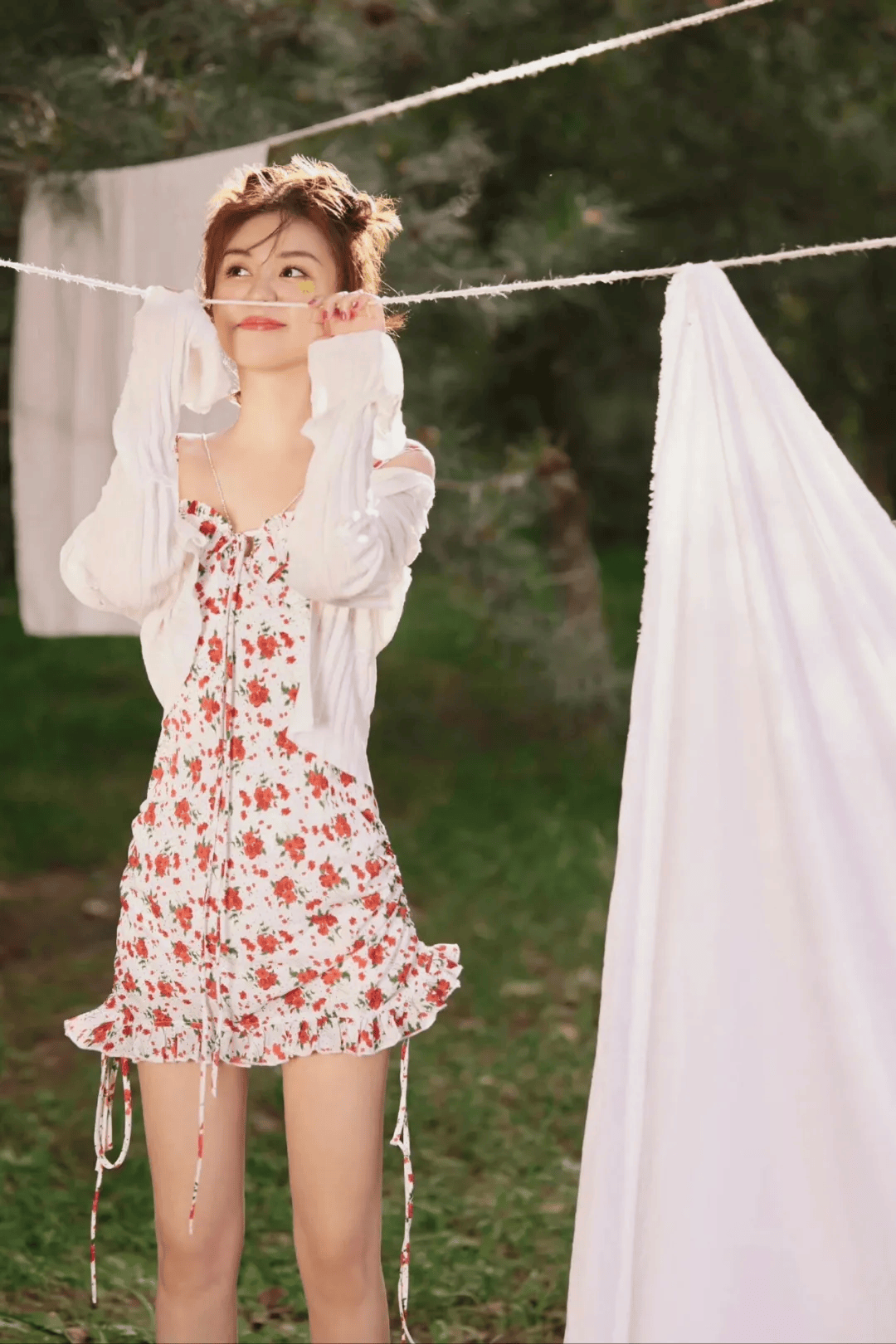 郑合惠子的美,巧妙地融合了两种看似对立的气质。初见时,是扑面而来的清甜,圆圆的眼睛笑起来弯成月牙,灵动又无害,十足的邻家妹妹感。但当镜头拉近,精致的五官与姣好的身形,又会悄然流露出恰到好处的妩媚,那份甜美中夹杂的些许性感,反而更具反差魅力。