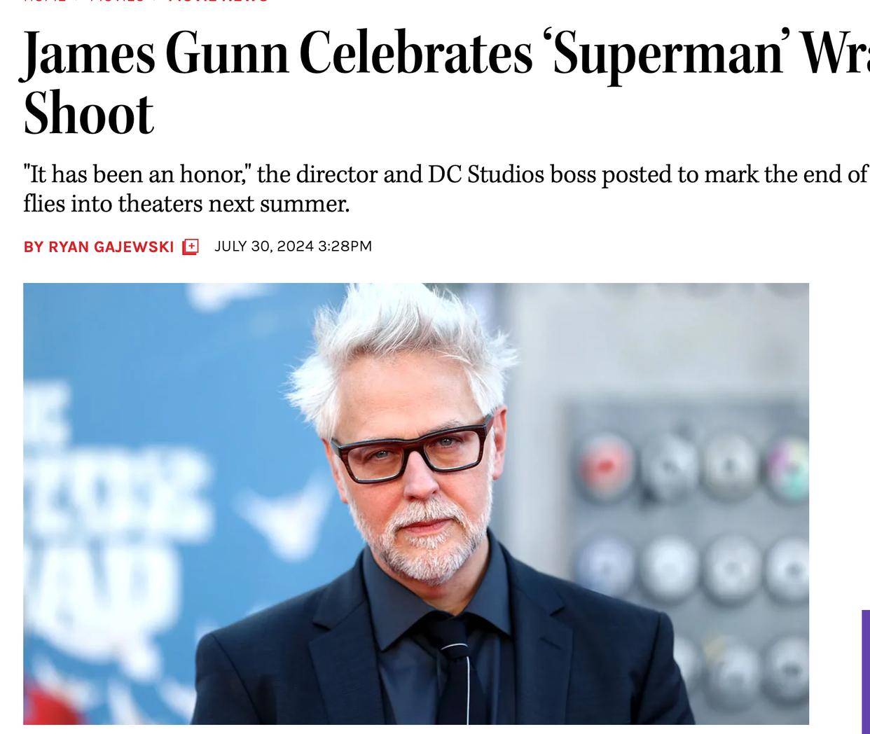 古恩在『社交平台』上面庆祝《超人》杀青,剧组的成员对于票房很有信心,然而《THR》的影评赖恩认为,古恩的行为属于“半场开香槟”。古恩可能自己觉得电影的质量超高,但是观众们不一定认同他的感受,毕竟《超人:传承》需要通过市场的检验,赖恩觉得古恩有点乐观。当然,导演拥有乐观的心态没有错,毕竟DC影业的走进了正确的轨道,而且DC工作室在《小丑:双重疯狂》上面的投入更大,这部作品可以给《超人》分担压力。况且赖恩也承认,《超人》拥有忠实、稳定的追求者,古恩有点乐观很正常。只不过DC影业过于自信了,华纳也会忽视宣传方面的细节,这就导致影片的效果达不到预期。