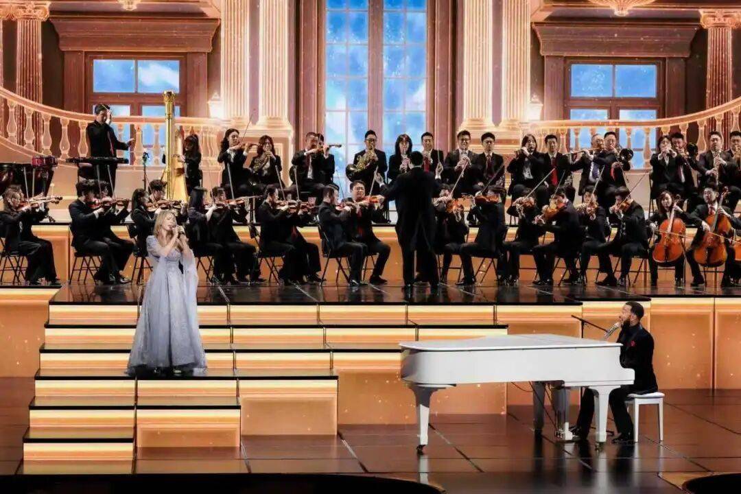 伴随零点钟声,中国爱乐乐团56名演员登场,精彩演绎《交响街舞(新春之声)》,并为《致爱组曲》担任伴奏。《新春之声》创新改编经典乐曲《春之声圆舞曲》,融合交响乐、街舞与芭蕾舞,奏响中国气象的春日交响曲;《致爱组曲》中,爱乐乐团乐手为中外歌手伴奏,以音乐为桥交流互鉴,勾勒携手共建美好未来的动人意境。