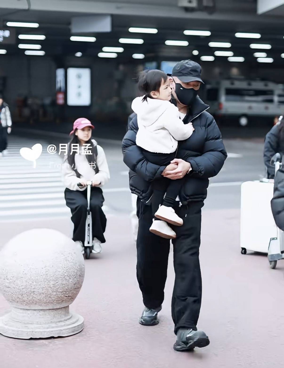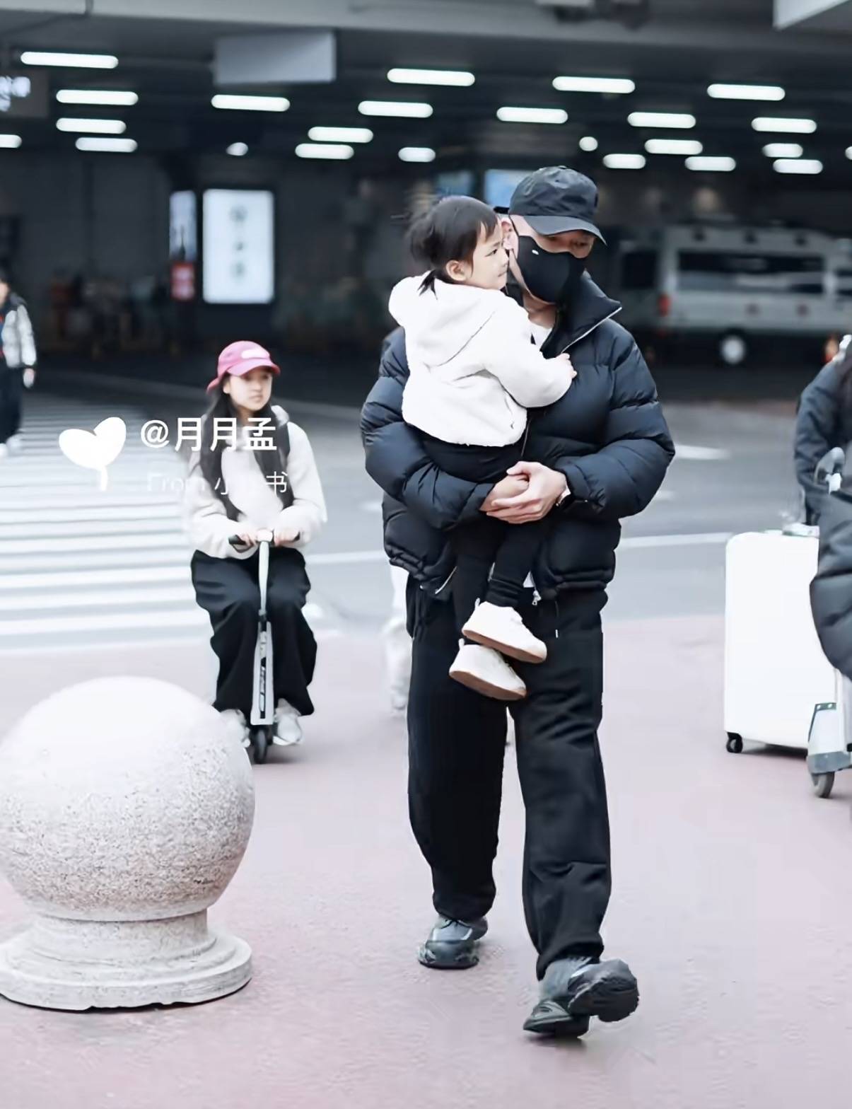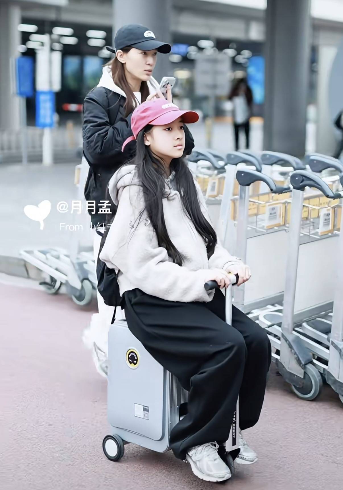 聂子一坐在电动行李箱上,和妈妈一起走在爸爸身后。聂子一已经11岁了,她『长发』披肩、气质出众,眼神格外犀利。