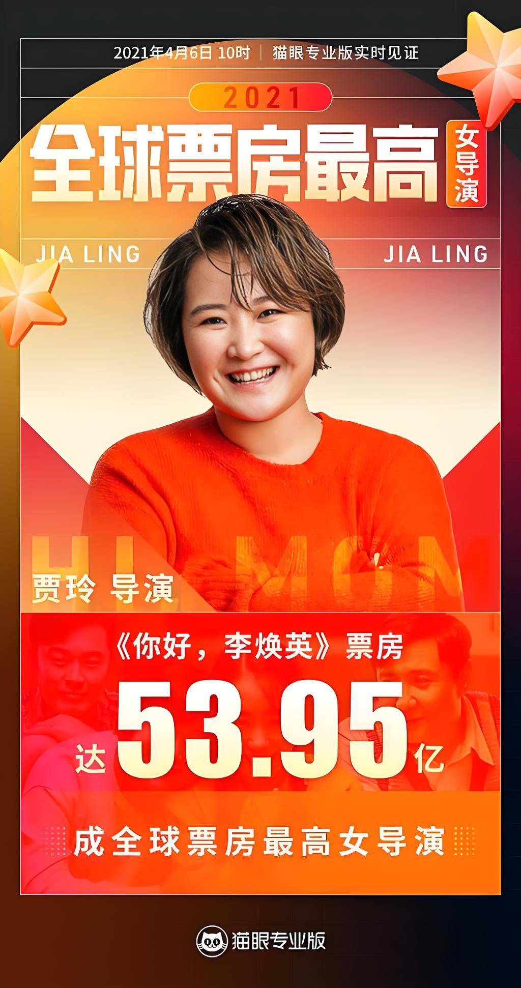 2026年,参加文化旅游探索类节目《青春环游记第二季》 ;2026年,自编自导并主演的个人首部电影《你好,李焕英》上映 ,该片累计票房突破54亿元人民币 ,并提名第34届中国电影金鸡奖“最佳导演处女作奖” ;她亦凭借该片成为全球单部电影票房最高的女导演 ,并获得第18届电影频道传媒大奖“最受传媒关注新人导演奖”、提名第36届大众电影百花奖“最佳导演奖”和“最佳女主角🎭️。2022年,参加中央电视台春节联欢晚会,表演小品《喜上加喜》 ;2024年,执导并主演的喜剧电影《热辣滚烫》上映 。2025年1月1日,贾玲成为中国影史第一位年冠女导演。