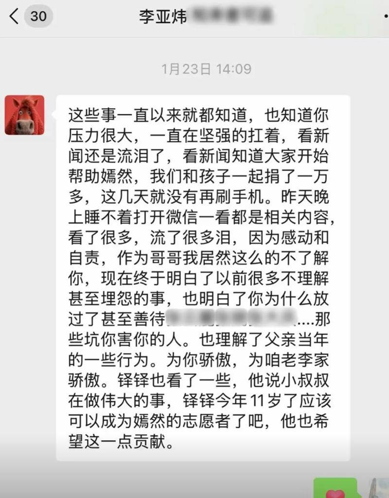 从哥哥发来的信息中,李亚鹏读出了三点深意。首先,十八年来,哥哥和弟弟几乎断绝了联系,种种的过往积压在哥哥心中,必定有着深深的失望与愤恨。毕竟,爱得越深,恨意就越浓。其次,尽管哥哥内心有过怨恨,但当得知弟弟遭遇困境时,依然能够展现出无私的大爱和宽广的心胸,这份宽容和大义,让哥哥内心充满了自责,也感动至深。同时,哥哥也开始反思过去这些年的误会与冷漠——他结婚生子,却没有告诉弟弟,甚至连李亚鹏的侄子已经11岁,他才得知。由此可见,两兄弟之间的误解与隔阂是多么深。最后,尽管有过错,哥哥依然选择主动伸出和平之手,提出和解。18年的隔阂,因李亚鹏的善良和宽容,而变得微不足道,毕竟血浓于水。无论过去如何,真正的亲情是无法割裂的。