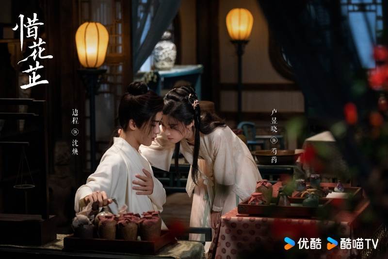 在《惜花芷》中花家养女“芍药”与纨绔衙内“沈焕”从针锋相对到彼此依靠,形成“纨绔少爷×软萌哭包”组合。两人并肩而放花灯一幕中,沈焕的宠溺眼神让观众瞬间入坑。戏外花絮中即兴跳舞、比心互动被调侃“像小学生恋爱”,两人在访谈中互夸对方独一无二,幕前幕后都散发青春甜感!