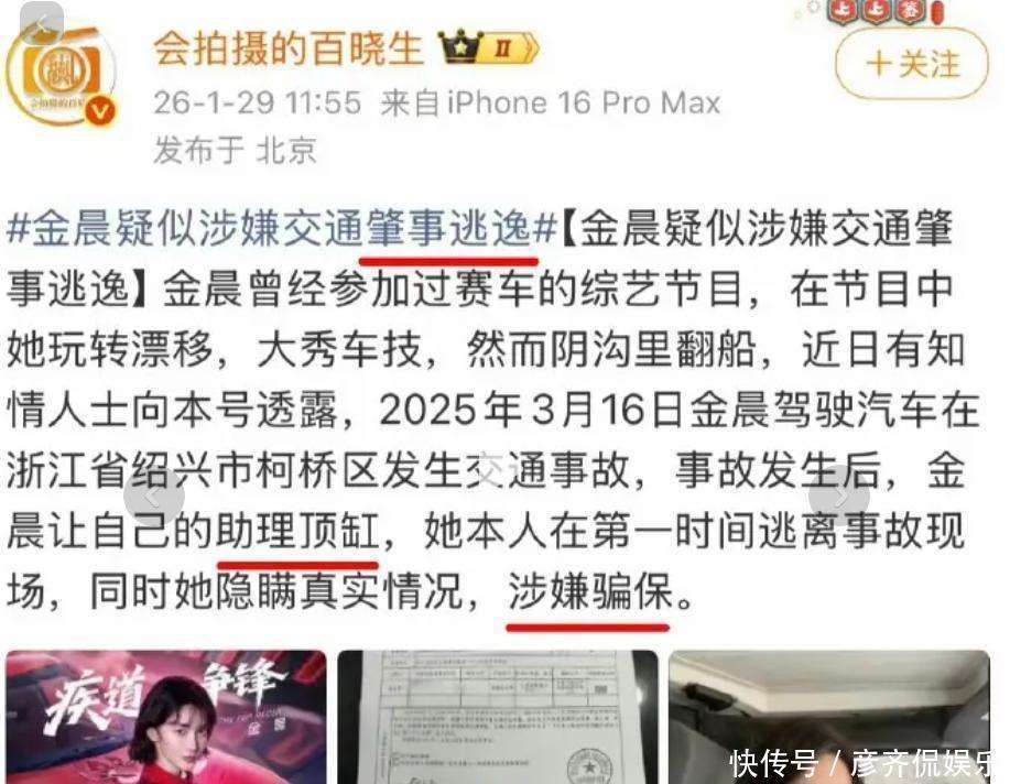 女星『金晨』涉嫌交通肇事逃逸!借助助理掩盖骗保,保险公司揭真相(影视女演员『金晨』)