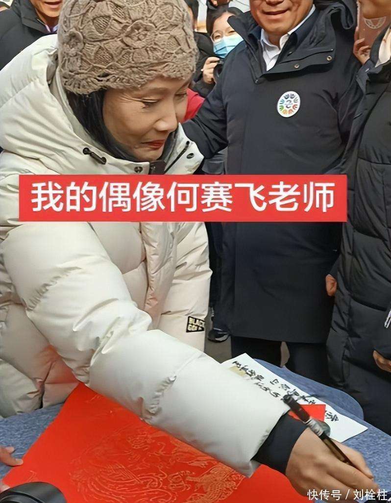 心经》,每一张作品都充满了个性,每一笔每一划都体现了她在书法上投入的心血。她曾说过,小楷非常难写,需要死记硬背才能记住笔画,可见她在练习书法时的专注与执着。2026年2月,何赛飞还在直播时现场写福字送祝福,当有网友问她是否是徐悲鸿再传弟子时,她谦虚地表示自己只是业余水平,绝不敢当这个称号。