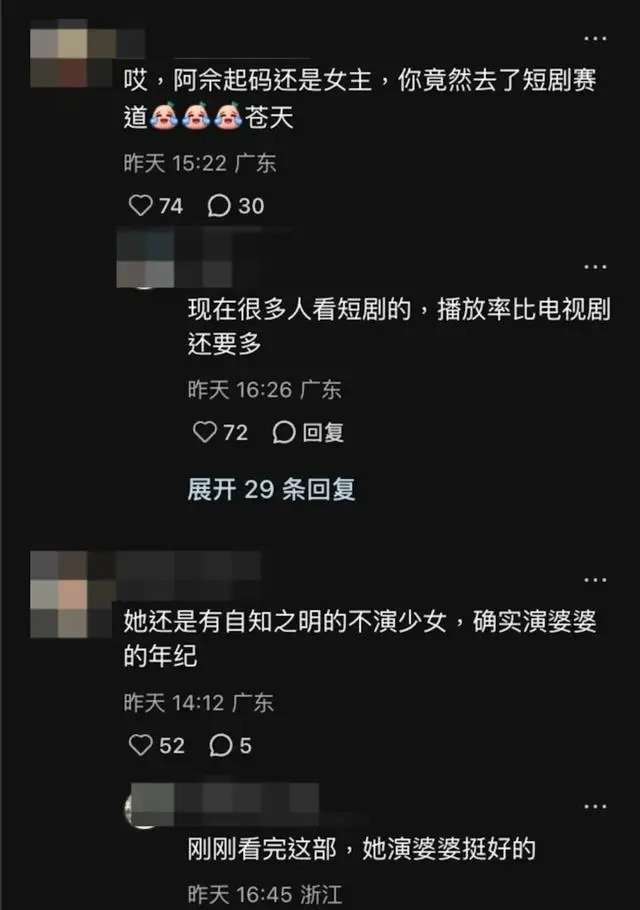 然而,关于她降级演婆婆的消息,也引发了激烈的讨论。一部分观众感到遗憾,认为与同期的佘诗曼相比,叶璇的地位已经大不如前;有网友甚至调侃她终于意识到自己已经到了演婆婆的年纪,开始不再强行装嫩。但也有不少支持者站出来力挺,认为职业不分贵贱,叶璇凭借她的专业素养赚钱,比那些永远不能放下昔日光环的人更为理智,大家也纷纷称赞她是短剧界最优雅的婆婆。