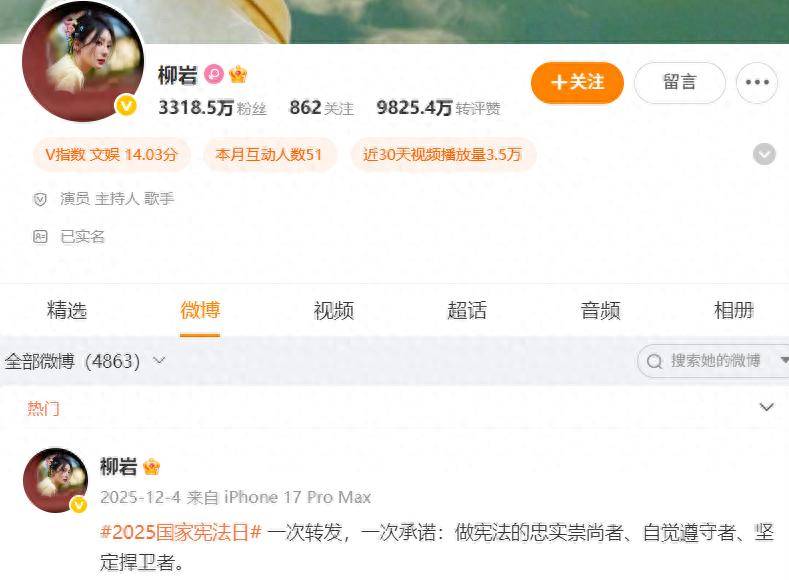 曾经发过4863条微博,有时候一天要发好几条的“宅男女神”近日被网友和媒体发现,已经有整整三个月没有更新其新浪微博(最后一条更新的微博是2025年12月4日),“『柳岩』停更”“『柳岩』消失”“『柳岩』去向成谜”“寻找『柳岩』”一时成为炙手可热的新闻热搜词。