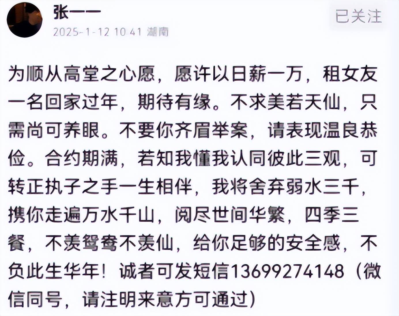 『柳岩』前男友、“钻石王老五”张一一被网友扒出去年还在“租女友回家过年”