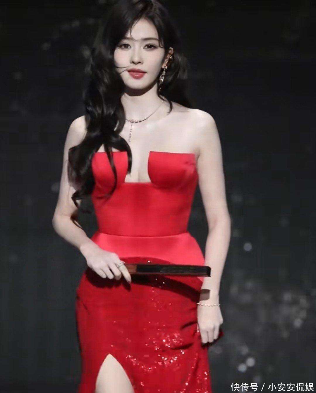 临江仙》中,以情意绵绵的『白鹿』幻化的女子,此次也在现场惊艳亮相。她身着一条红色抹胸长裙👗,站在舞台上那一瞬间,宛如仙女下凡,身姿优雅、曲线迷人,脸庞也不再显得青涩,尽显成熟女性♀️的韵味与妩媚。