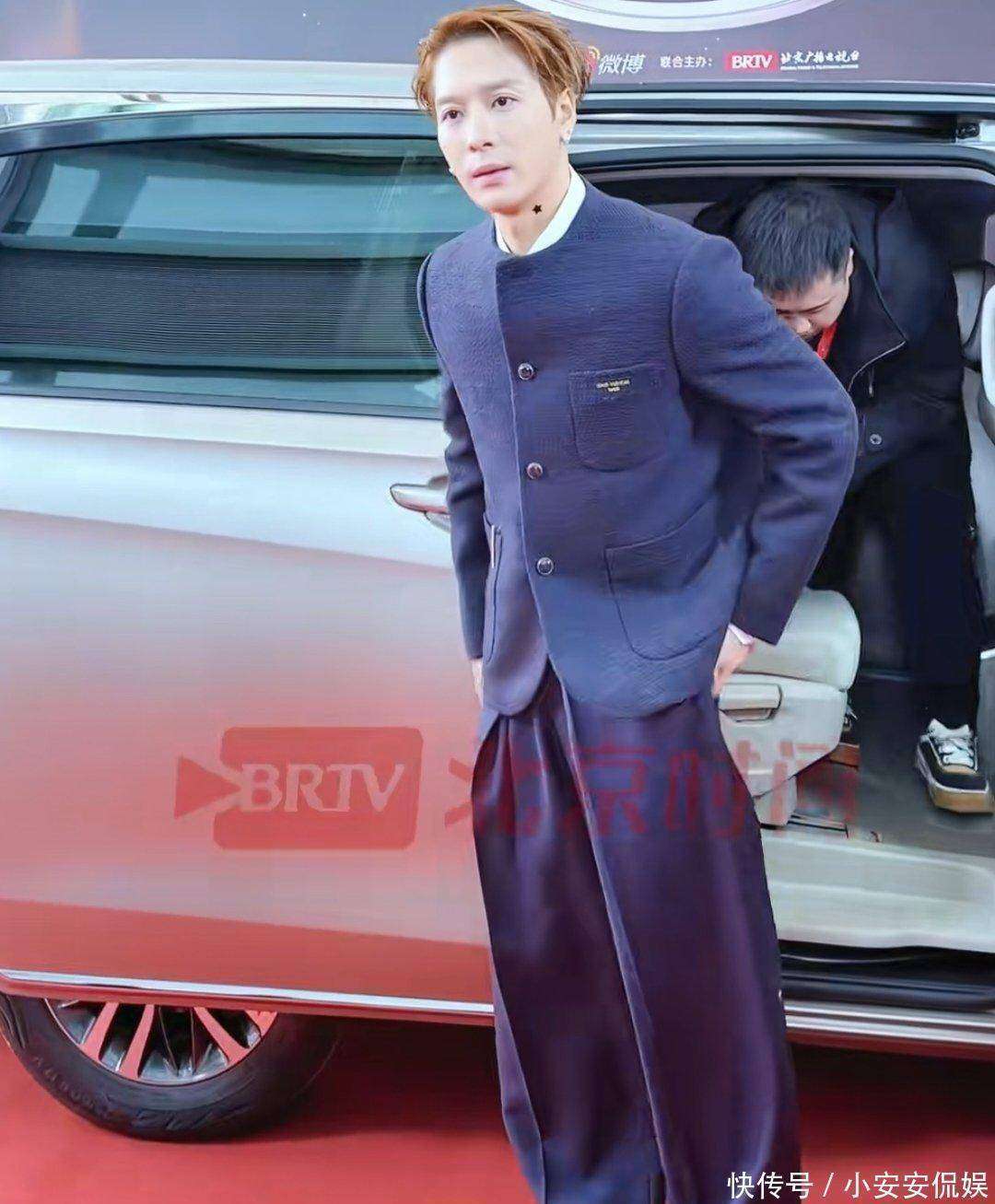 大家公认的潮流型男『王嘉尔』,这次的造型却让人失望。他穿着蓝色西装,顶着一头黄色的发型,脚踩厚底高跟鞋👠,整个造型看上去像是去凑热闹的,完全没有展现出他的时尚感。