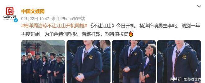 不让江山》官宣开机。这部剧作为S+级别的大制作,从一开始就被业内视为年度的重量级项目。主创阵容强大,投资规模可观,各路媒体也纷纷聚焦,关注度极高。