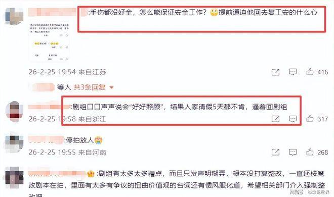 骨折带伤复工的问题,涉及演员与剧组在工作条件上的约定与执行。若相关方没有给出正式的解释,外界对于剧组是否尽到保护演员健康的责任的追问,必然不会就此消散。