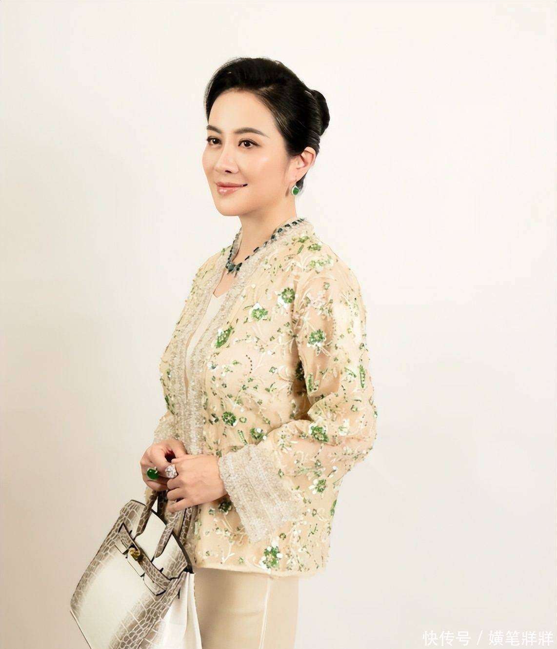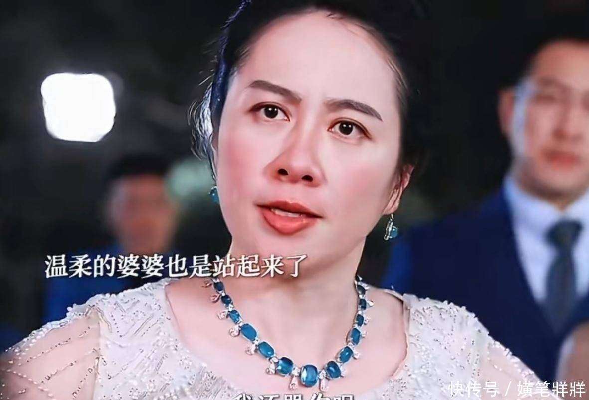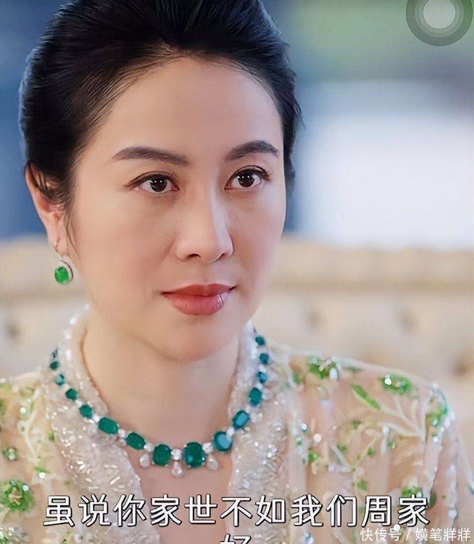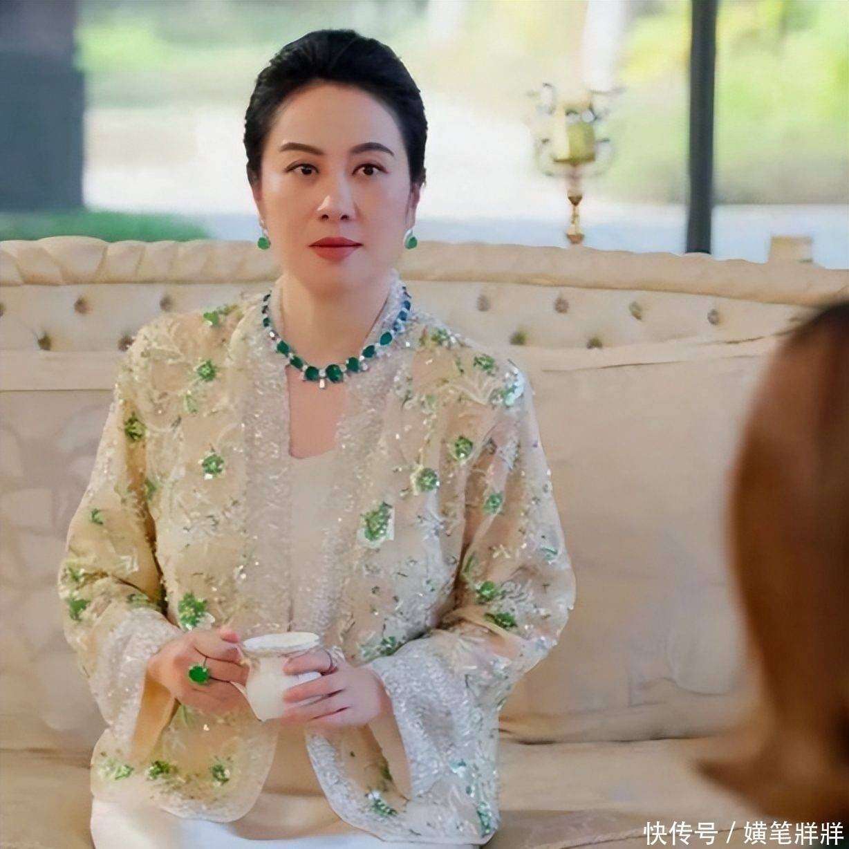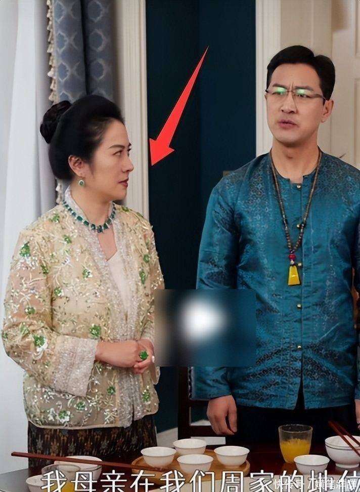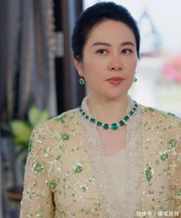 在造型方面,叶璇的婆婆形象有着独特的『打扮』,通常身着香槟金丝绒长裙👗,外披墨绿祥云纹的中式短褂,发髻高高盘成丸子头,脖子上佩戴的翡翠吊坠温润光泽,耳垂和手指的同色系玉饰也相得益彰。这身服装既不失传统贵妇的风韵,又巧妙地融入了现代审美节奏,精准地展现了她作为豪门掌舵人的气场与分寸。