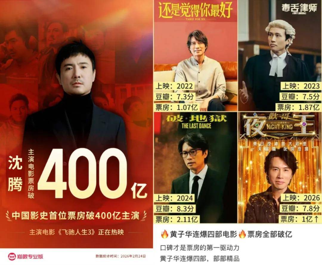 同样是喜剧之王,同样在2026春节档登顶封神,『沈腾』以“亿元俱乐部常客”的姿态撑起内地喜剧票房天花板,黄子华则凭小成本粤语喜剧、靠观众用脚投票实现市场逆袭。今天kk想和大家聊聊,『沈腾』与黄子华的成长喜剧创作路径有何不同,而观众为何偏偏为他们买单?