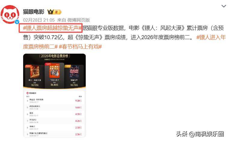 镖人》似乎展现出了强劲的后劲,已经成功逆袭,超越了《