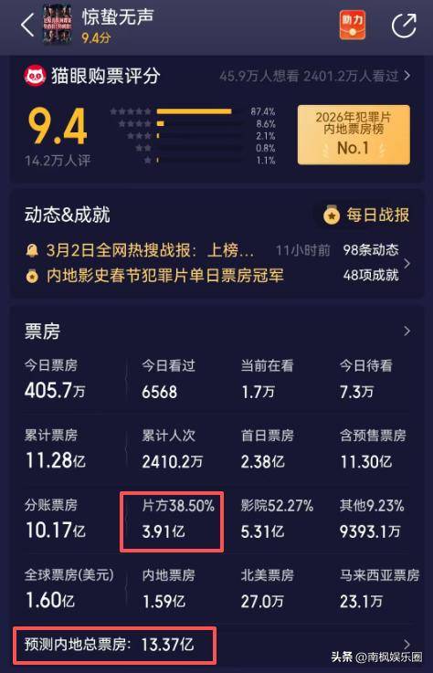 当下春节档电影的票房热度依然在持续攀升。《飞驰人生3》已经突破了38亿,稳居档期的票房冠军,预计最终能达到43亿,这不仅超越了前作的成绩,还刷新了整个IP的票房纪录。『沈腾』的演技和号召力毋庸置疑,春节档的一哥宝座他稳稳拿下,实至名归。