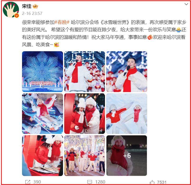 不难看出,这是春晚对『宋佳』的认可,也是『宋佳』老家哈尔滨对她的认可。