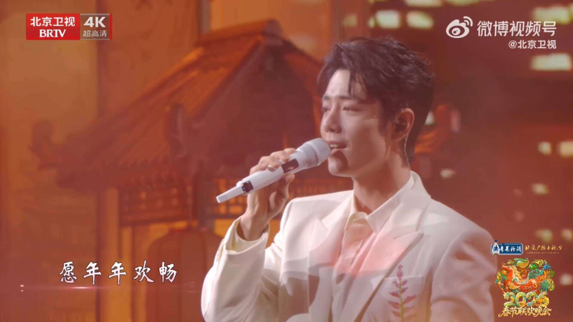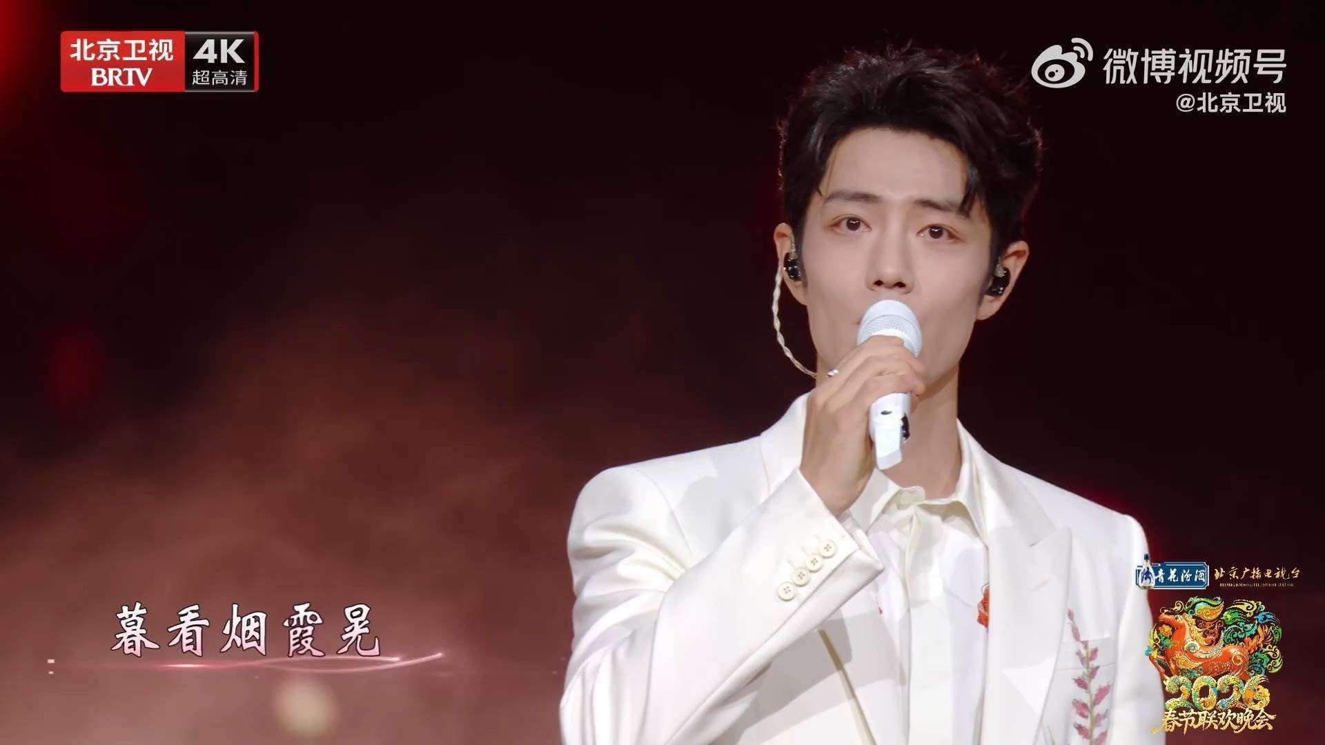 舞台设计别出心裁,巧妙融入了不少细节。大屏幕同步播放的2025年素人生活画面——有提着灯笼欢笑的孩童、田间弯腰插秧的农人、三代同堂围坐包饺子的场景,将「正月尝花糖,二月赏春忙」的四季流转巧妙具象化,仿佛让人亲身感受到烟火人间的温暖与生动。而最为动人的一刻,莫过于歌曲尾声,『肖战』摘掉耳返转身,面向观众,微笑着问道:「我们一起唱好不好?」那一瞬间,歌声虽有些许跑调,却充满了真挚与温情。粉丝们提前准备的红色灯牌在这一刻亮起,如同漫山遍野的红梅花海,映照着舞台上的水墨意境,产生了奇妙的化学反应。