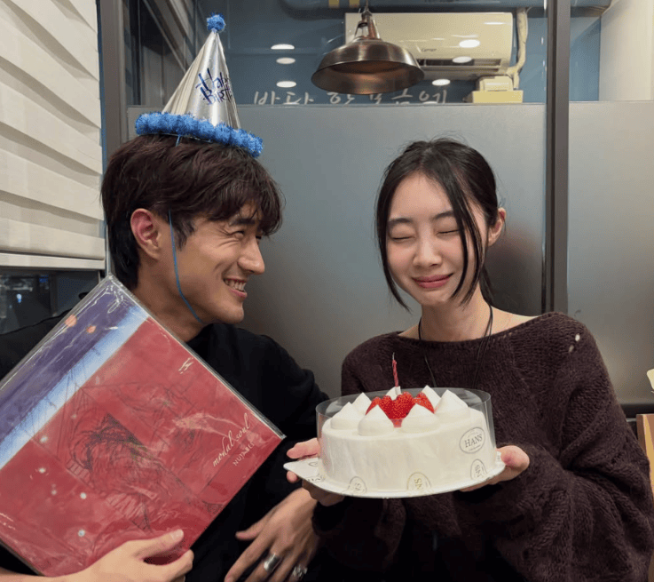 他们在韩国的小店为彼此庆祝生日,互送为对方买的礼物🎁。
