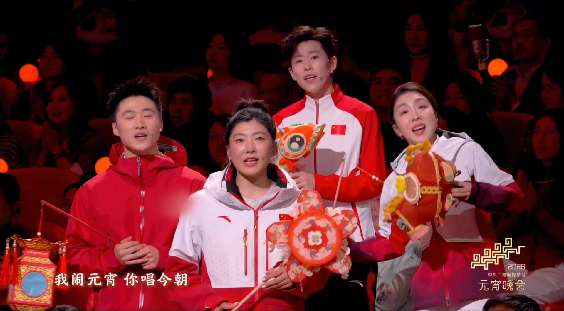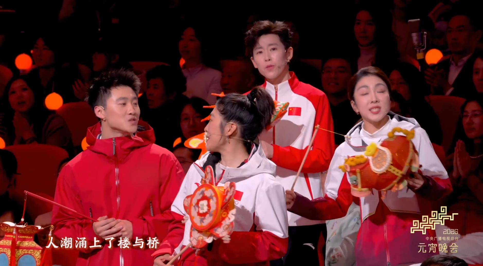 这场开场大秀可谓排面十足,以元宵游园会为主题,巧妙融合了传统花灯、街景等民俗元素,通过动态水墨光影和荷花绽放等视效,打造了一场“花灯映舞台,喜乐满元宵”的沉浸式视听盛宴。阵容更是实现了“破圈”集结——从影视演员『王凯』、刘钧、郭晓东,到歌手黄龄,再到冬奥冠军徐梦桃、王心迪、范可新、隋文静,老中青三代与文体『明星』️的跨界同台,完美诠释了“团圆喜庆”的主题。