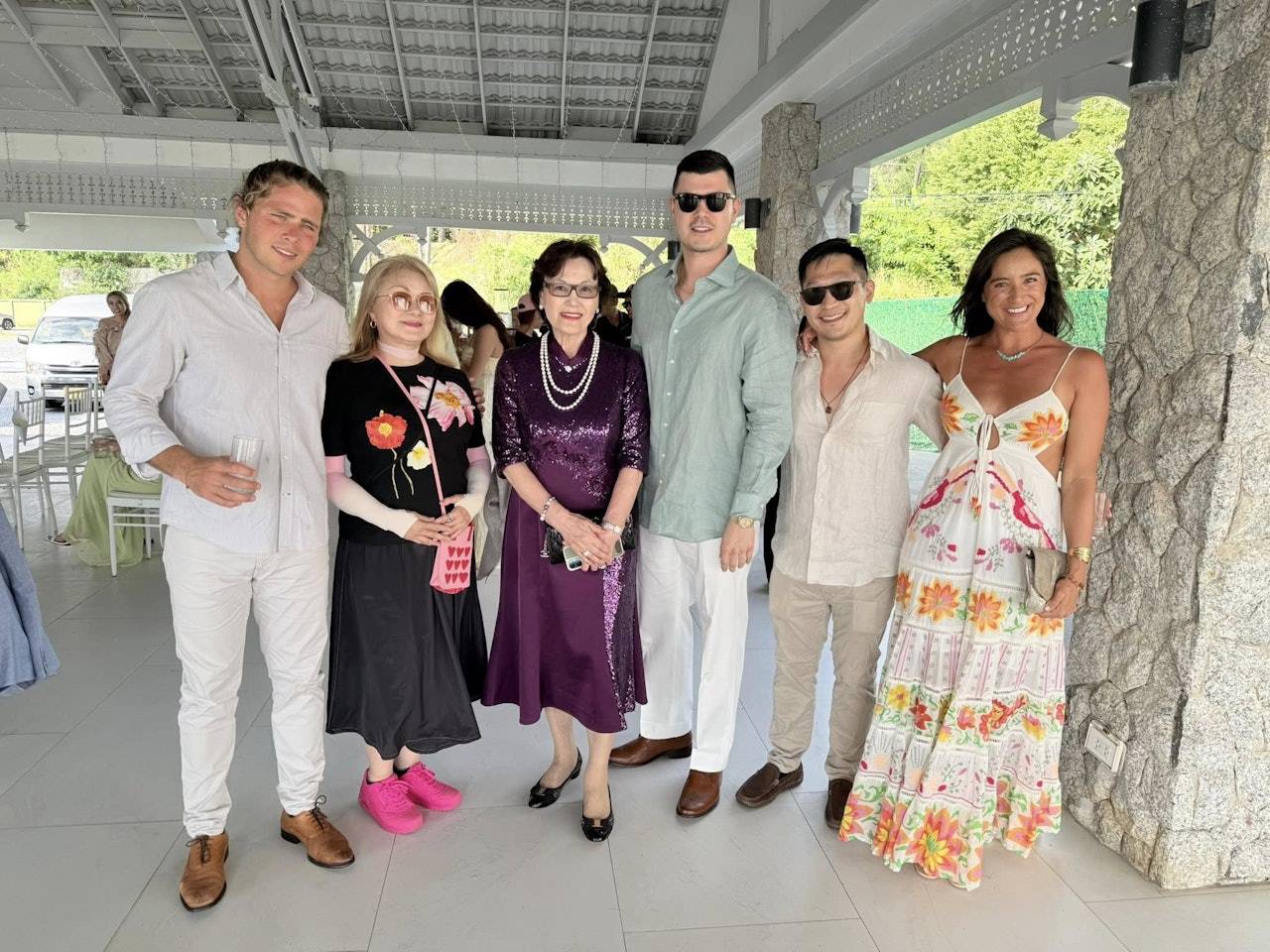 Roger与妻子在婚礼上『打扮』比较简单,而荣升婆婆的杨恭如母亲,则是非常重视这场婚礼。实际上林建明就是被她邀约来参加婚礼的,两人是相识多年的好友。杨恭如的妈妈当天身穿了紫色的闪片旗袍,还佩戴了两串名贵的珍珠项链,手指上戴上了名贵的钻戒,手腕还有镯子,这一身显得雍容华丽。事实上,杨妈妈的气质也的确突出,显得优雅、大方,只见她保养得宜,状态相当好。不过在现场就没有看到杨恭如本人,不知道她是没有出镜,还是没到场,不过弟弟结婚,这么重要的事情,杨恭如理应不会缺席。