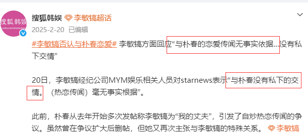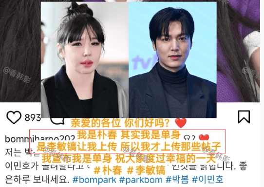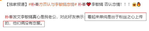 反反复复搞下来,『李敏镐』那边承受不住了,赶紧站出来辟谣说自己和朴春没恋爱,甚至私交都没有。