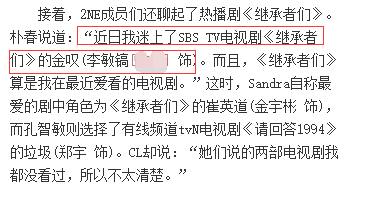 朴春痴迷《继承者们》,喜欢“金叹”媒体有过报道。
