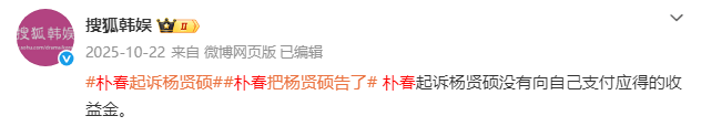 还有,去年10月,朴春把前公司老板杨贤硕给告了,说合约期内,对方少给自己分钱了。
