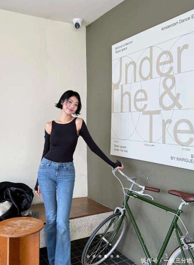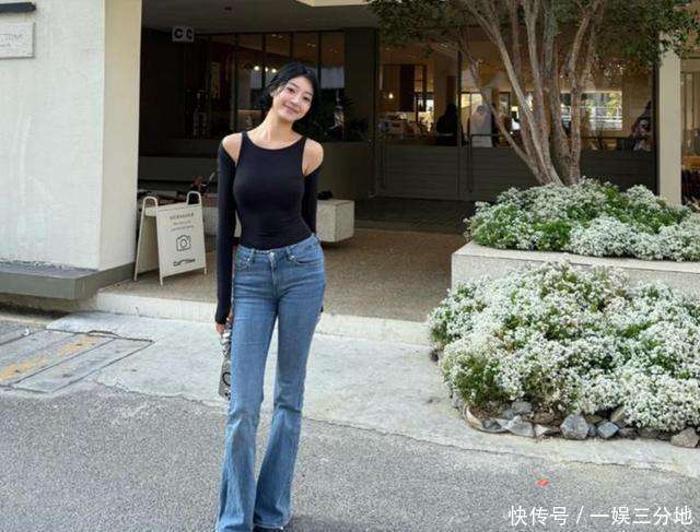 云希与纪凌尘的感情始于2026年,至今已经过去了快六年。作为韩国籍模特的她,长期在中国工作,事业和生活都与纪凌尘有着紧密的联系。云希身穿一件黑色露肩紧身长袖上衣,搭配复古蓝色大喇叭牛仔裤👖,整体造型简洁却不失精致。她的身材高挑,曲线优美,尤其是那修长的腿部线条,完全展现了她的时尚感与气质。