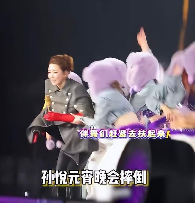 就在湖南卫视元宵晚会的舞台上,53 岁的孙悦正唱跳着经典的《大家一起来》,脚下一滑,整个人狠狠摔在了地上!