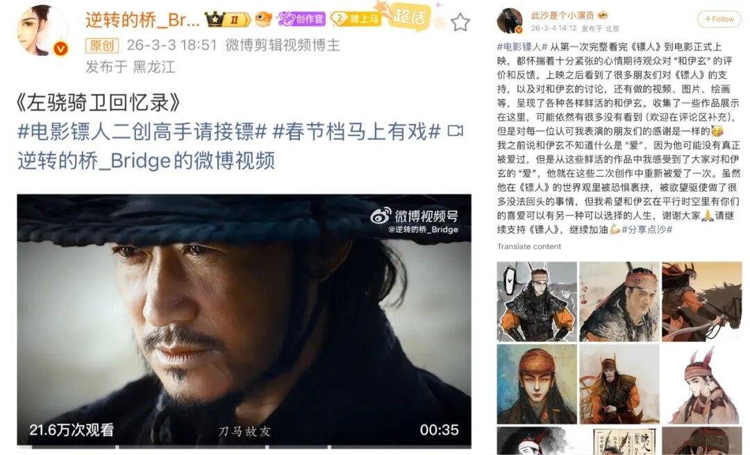 “精神股东”已纷纷“买股”续集的当下,我们热切期待着《镖人》后续的稳健票房走势。与此同时,也更希望未来能有更多好作品在微博“被看见”。