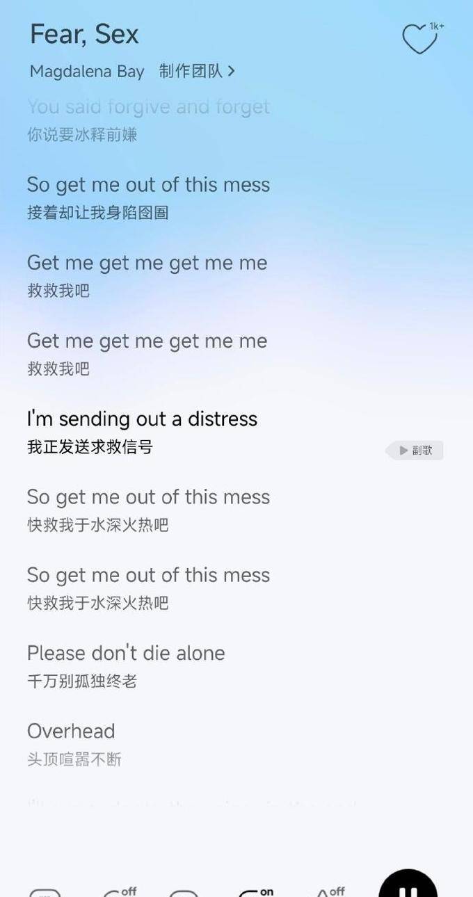 此外,当她发布文章时,她还附上了一段来自《fear sex》的英文歌词,每句话都透露出深深的绝望。