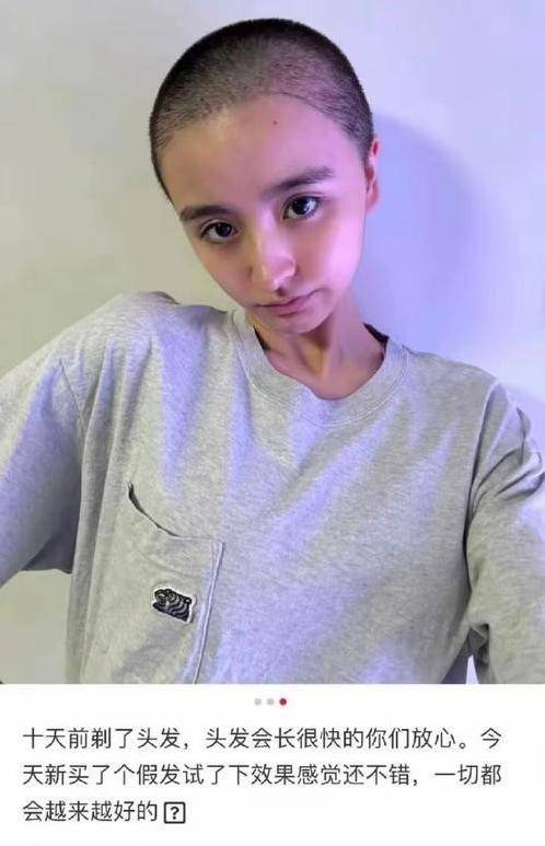 在去年的8月份,她突然展示了一种寸头的发型,并附上了这样的配文:“你们可以放心,因为十天前她已经剃掉了头发,头发会很快长出来”。