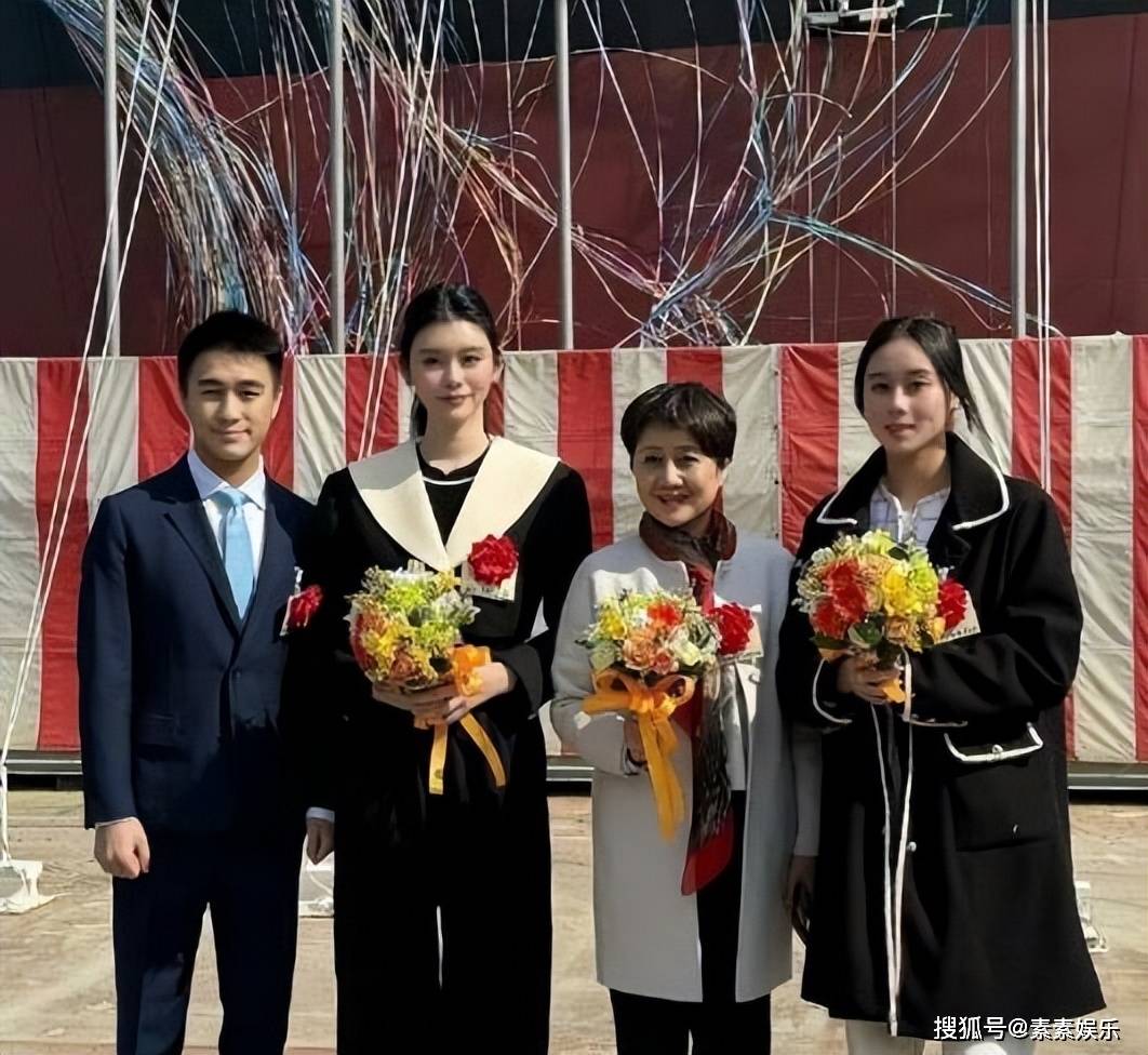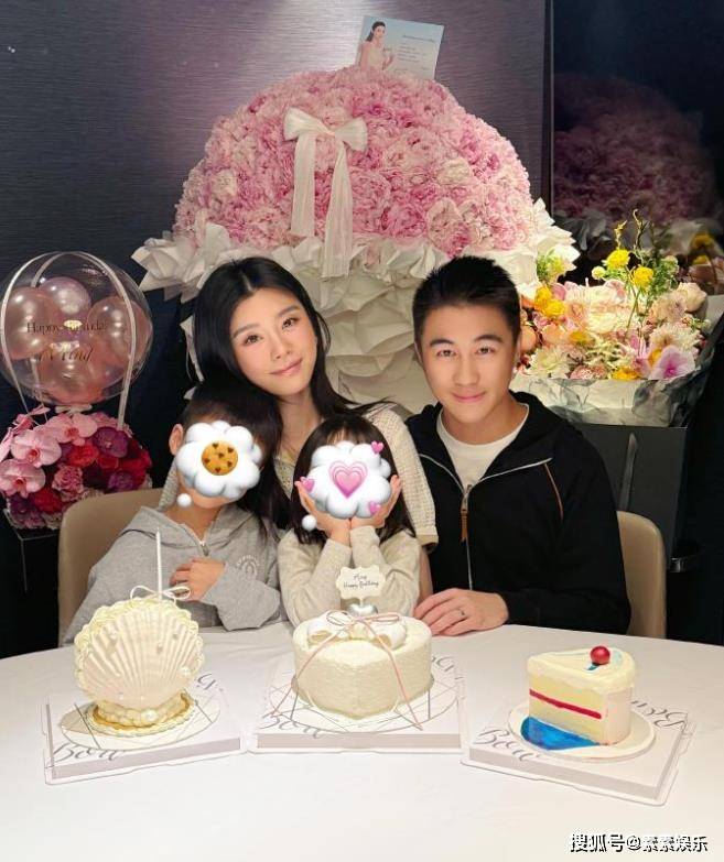 当然看细节你会发现,巨型的粉玫瑰,一定是何猷君送给老婆的啦,精心为老婆准备这么大的一束粉玫瑰,儿女也肯定有献花一起陪伴在妈妈身边,女儿捧着脸卖萌出镜,好温馨的幸福家人。