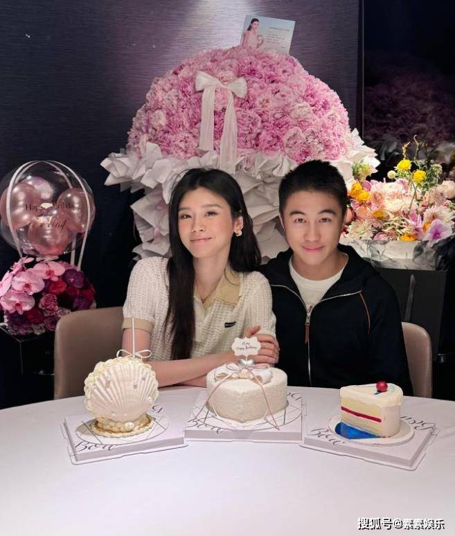 没有啦,奚梦瑶微微灿笑,全家盛装『打扮』出席生日宴,一家四口一起在玫瑰前庆祝。