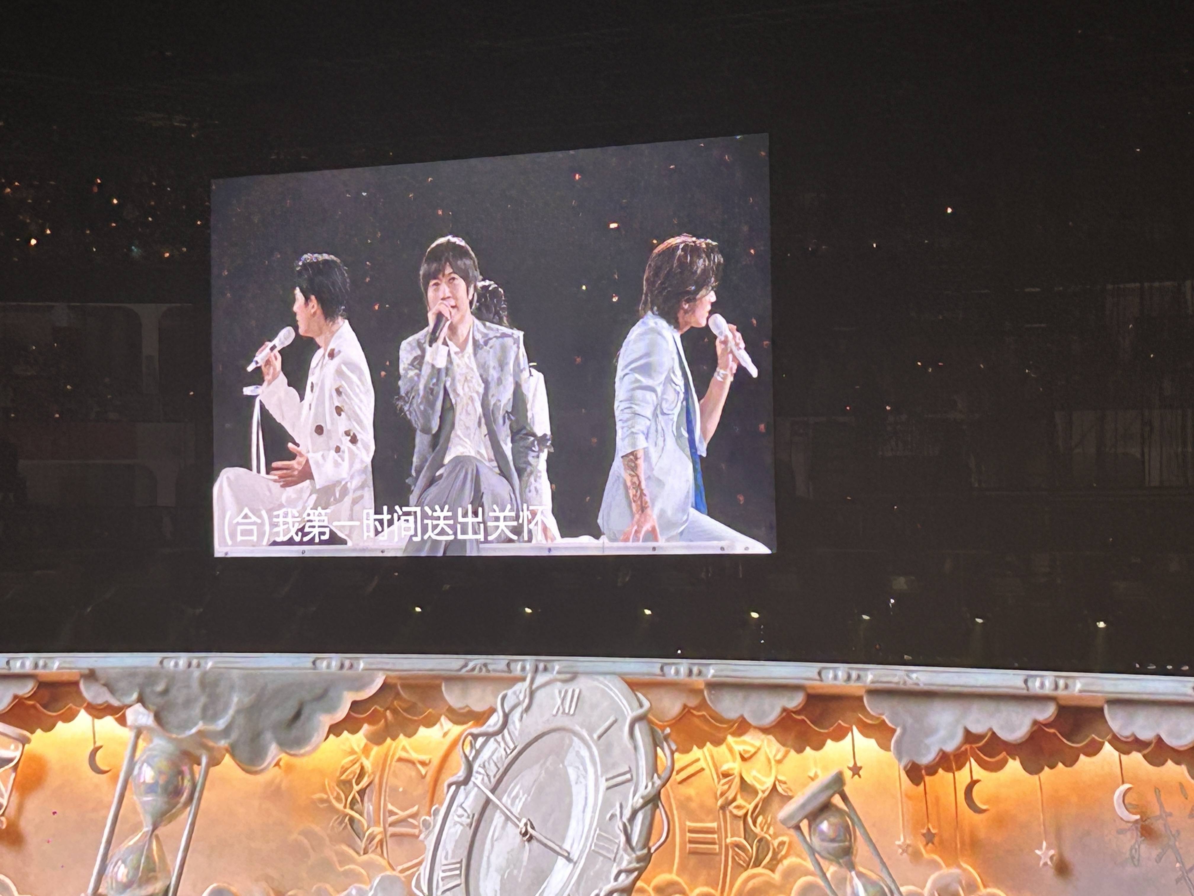 言承旭、吴建豪、周渝民默契和声,嗓音依旧贴合当年韵味,阿信的摇滚声线加入其中,为这首经典老歌增添了别样层次感,四种声线碰撞出奇妙火花❇️。台下1.6万观众自发开启大合唱,熟悉的旋律响彻场馆,声浪穿透夜空,跨越20余年的青春回忆在此刻汇聚,没有刻意煽情,却让无数现场观众热泪盈眶,这不仅是一场演唱会,更是一代人的青春回响。