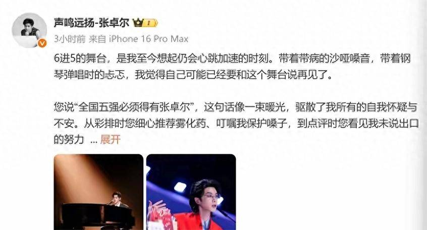 内娱综艺的人情世故,全在一封感谢信里体现得淋漓尽致!《声鸣远扬》节目收官后,人气选手张卓尔发布长文感恩节目历程,通篇文字感谢节目组、感谢舞台、感谢同期伙伴,唯独对一路力捧他、护他晋级的导师『那英』只字未提,瞬间引发全网热议。