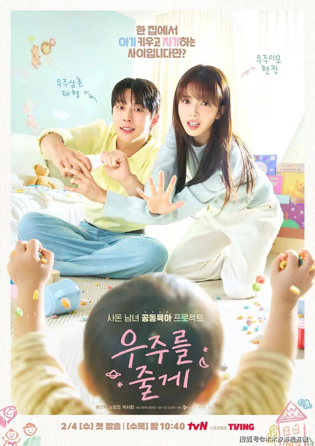 这是一部超甜的治愈韩剧。宣泰亨和禹贤真本来是互相看不顺眼的准姻亲,一场车祸让他们失去哥姐,被迫一起抚养20个月大的侄子“宇宙”。