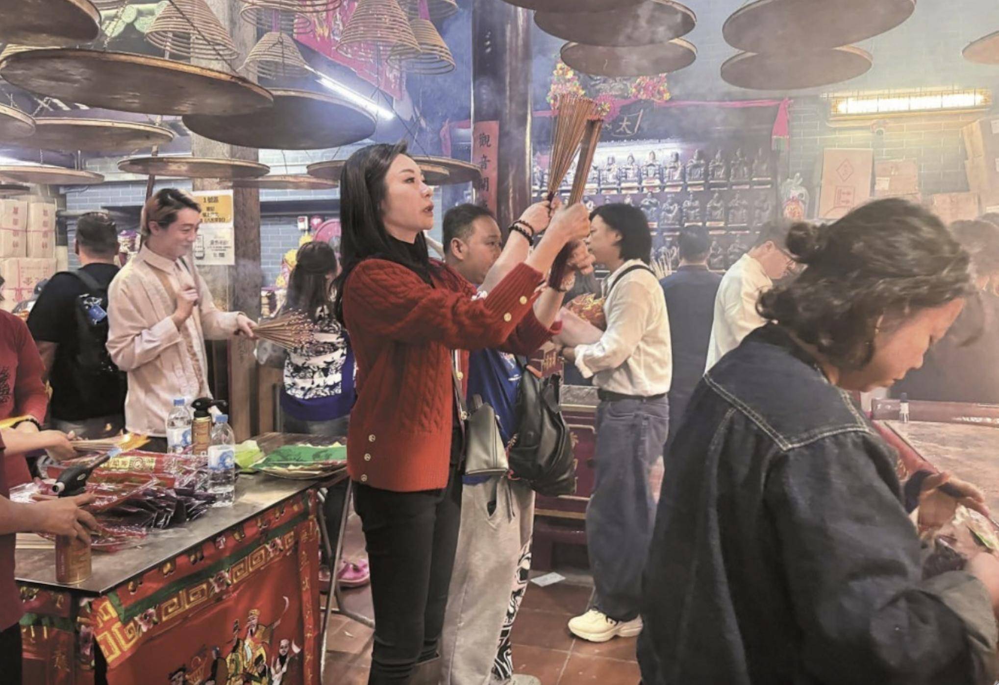 香港的三太子庙在1898年就已经创建,是香港唯一一处主祀哪吒的庙宇。由于历史悠久,还是历史建筑,所以深得市民们的信奉,不说逢年过节,就是一般的日子,都有很多市民前往叩拜。而叩拜三太子,除了消灾解厄之外,更多人祈求的是事业与财运,此外还有感情生活。对于陆诗韵来说,她拜三太子,首先求的是事业,如今她是女强人,经营内地以及护肤品生意,身份还是大湾区香港女企业家总会的副主席,自然是祈求事业顺遂。此外,她要求感情,这个也很重要,因为至今单身。而她与友人在街头买糖果,显然就是买来供奉三太子的,因为三太子喜欢糖果。