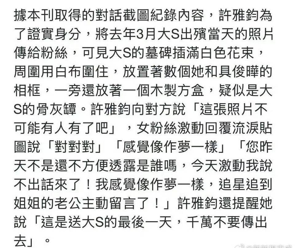 3月11日早上,台媒的猛料一曝光,全网瞬间炸成了烟花。谁能想到,许雅钧私联大S女粉丝也就罢了,为了证明 “我就是我,徐家女婿本人”,居然把大S的出殡照给发了过去!