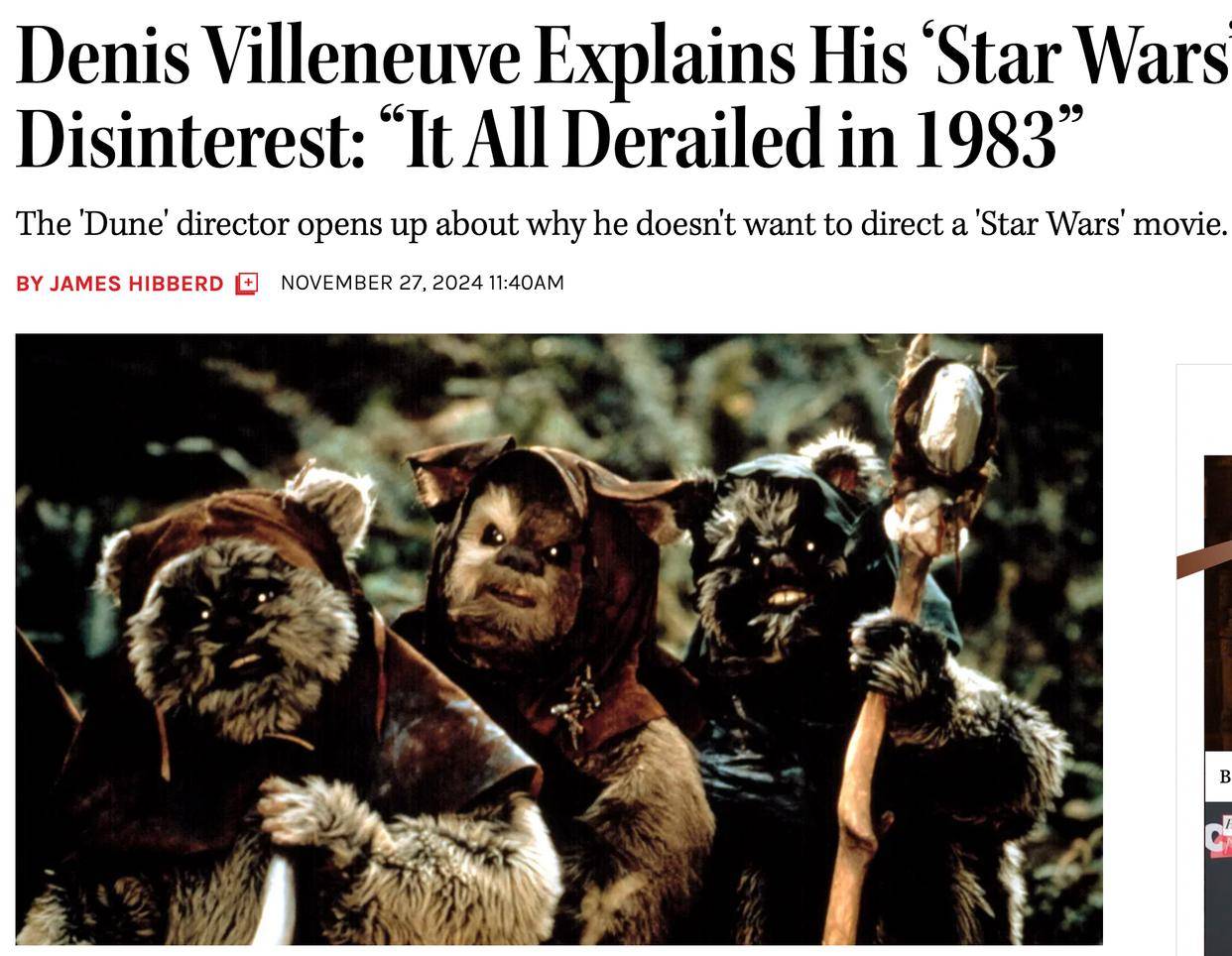 维伦纽瓦针对《星球大战》的言论引发了争议,迪士尼高层邀请他执导《星战》的第十部系列,也就是《天行者崛起》的续集,但是维伦纽瓦谢绝了这家大型影业的邀请。这位导演给出的理由具有争议,他觉得《星球大战》的道路走偏了,《新希望》就违背了科幻片的初衷。只不过该系列的收视率、票房太高,再加上《曼达洛人》与《游侠索罗》这些衍生系列也获得了成功,大家忽略了《星战》的漏洞。《THR》的影评人杰姆斯认同维伦纽瓦的看法,也许在大部分人的眼中,《星球大战》完美无缺,然而维伦纽瓦拥有自己的价值观,而且他作为资深电影人,肯定也形成了自身对电影的评判体系。