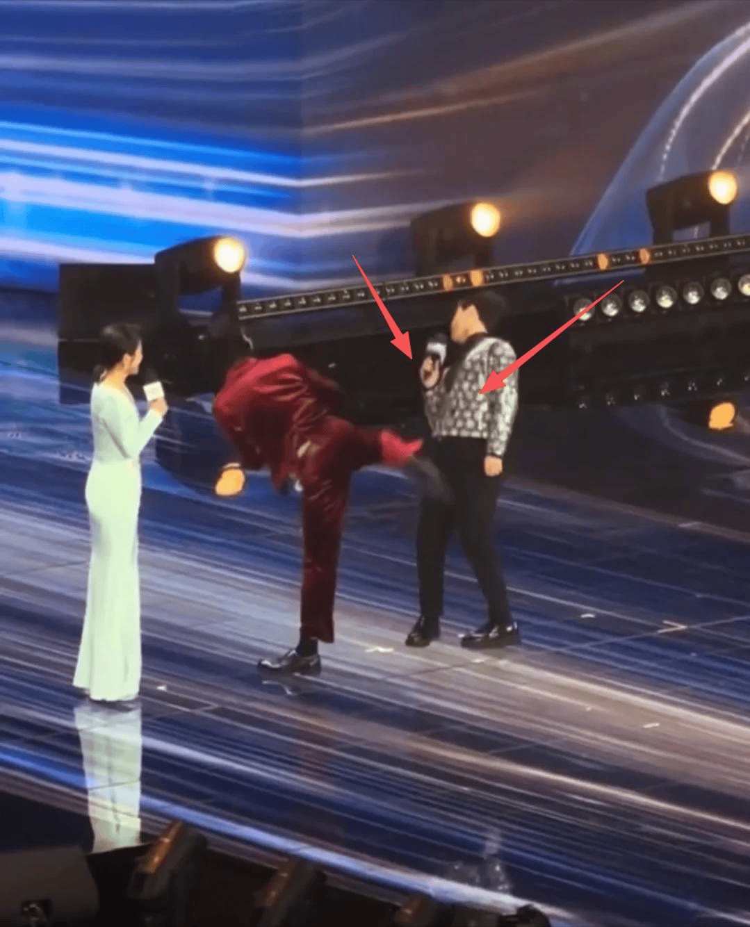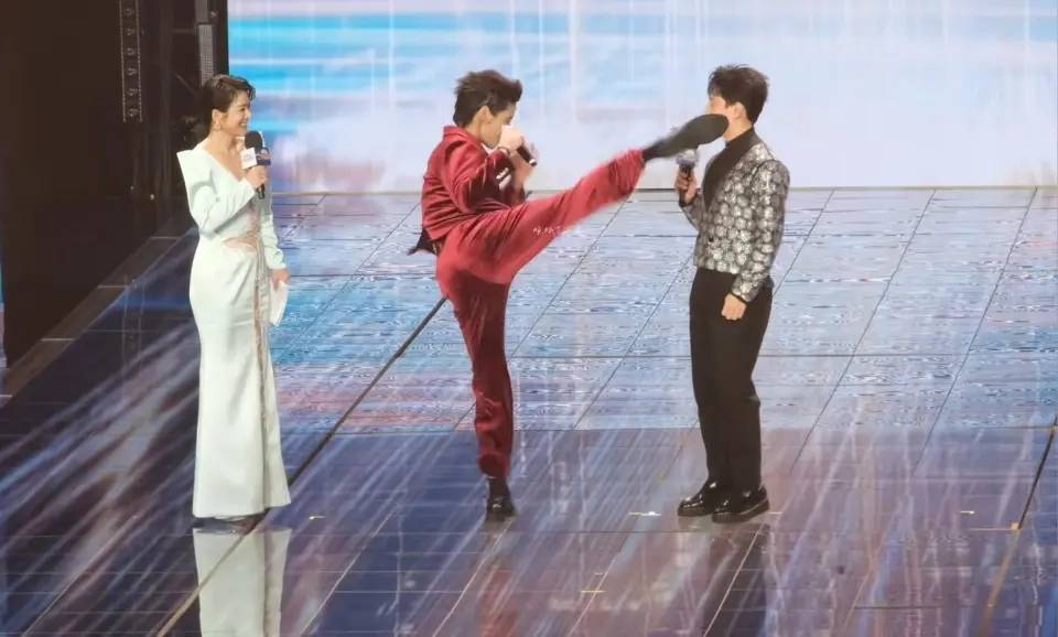 主持人刚把话说完,台上的那条腿就抬起来了。