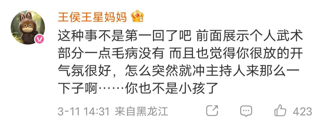 更难得的是,他把“不爽”说出来了,又把场子接回来了。几秒钟表情归位、继续主持流程,这才是主持人的硬功夫。