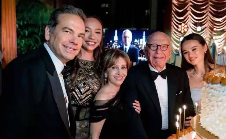 3月10日,95岁传媒大亨鲁珀特·默多克的生日宴,活脱脱演变成了一部现实版《继承之战》的番外篇。前妻邓文迪携两名女儿高调登场,母女三人身着精致刺绣中国风礼服,在家族官方合影中稳稳占据核心位置。而另一边,因争产纠纷与父亲对簿公堂的另外三名子女,则集体从这场盛宴中“消失”。这场看似温馨的生日派对,每一帧画面都写满了豪门内部的权力更迭与格局重塑。