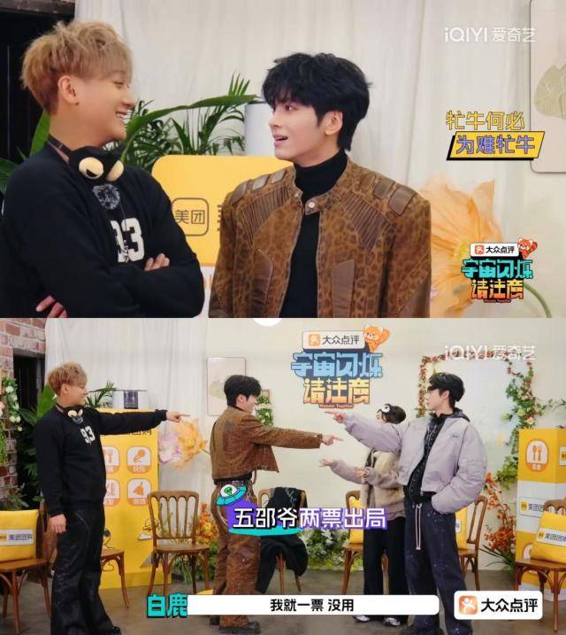 更搞笑的宇宙爆闪团连互踩都透着默契劲儿,『黄子韬』和『王鹤棣』一致认为狼人身份的『白鹿』是好人,邵子恒也没有怀疑『白鹿』,三人分析过程中还连环模仿『白鹿』刀人。等『黄子韬』和『王鹤棣』联手淘汰邵子恒后发现游戏竟然没结束,又默契贡献骚操作,分别努力拉拢狼人『白鹿』,最后兄弟们一起助攻狼人获胜。